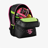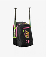 Help your young ballplayer fall in love with the game with the Party Animals Powerized Stick Pack. Inspired by Party Animals, the arch-rival of the Savannah Bananas, this Black and Neon Pink bag's large main compartment fits a helmet, glove and more. Two mesh sleeves on the sides can carry bats or water bottles, and the foam padded shoulder straps keep your player comfortable on the walk to the field.